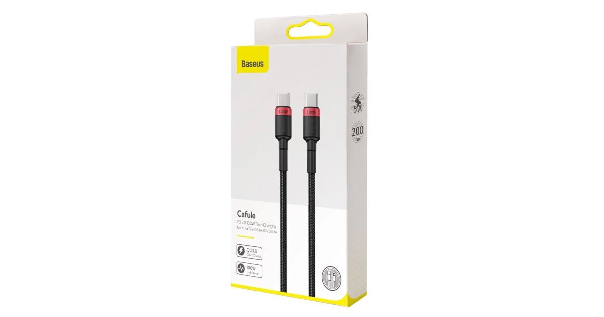 Ezt a terméket így is ismerheted: Baseus Cafule USB-C – USB-C kábel, QC 3.0, PD 2.0, 100 W, 5A, 2 m (piros-fekete)