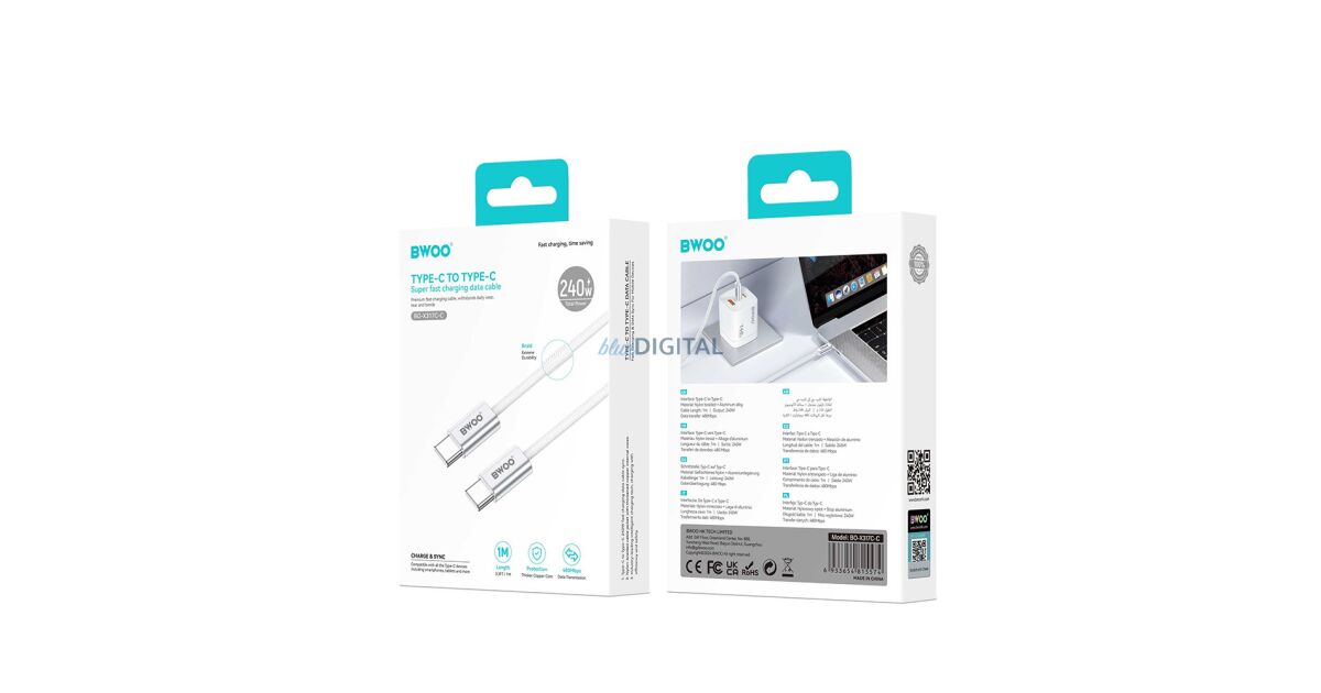 BWOO BO-X317C-C 240W USB-C kábel: Villámgyors töltés és adatátvitel ⚡