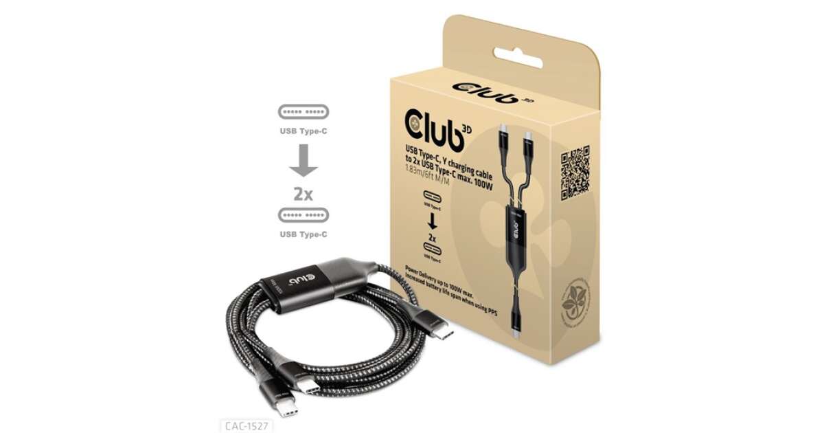 CLUB3D USB-C Y töltőkábel: 2x USB-C kimenet, 100W max. teljesítmény 💪
