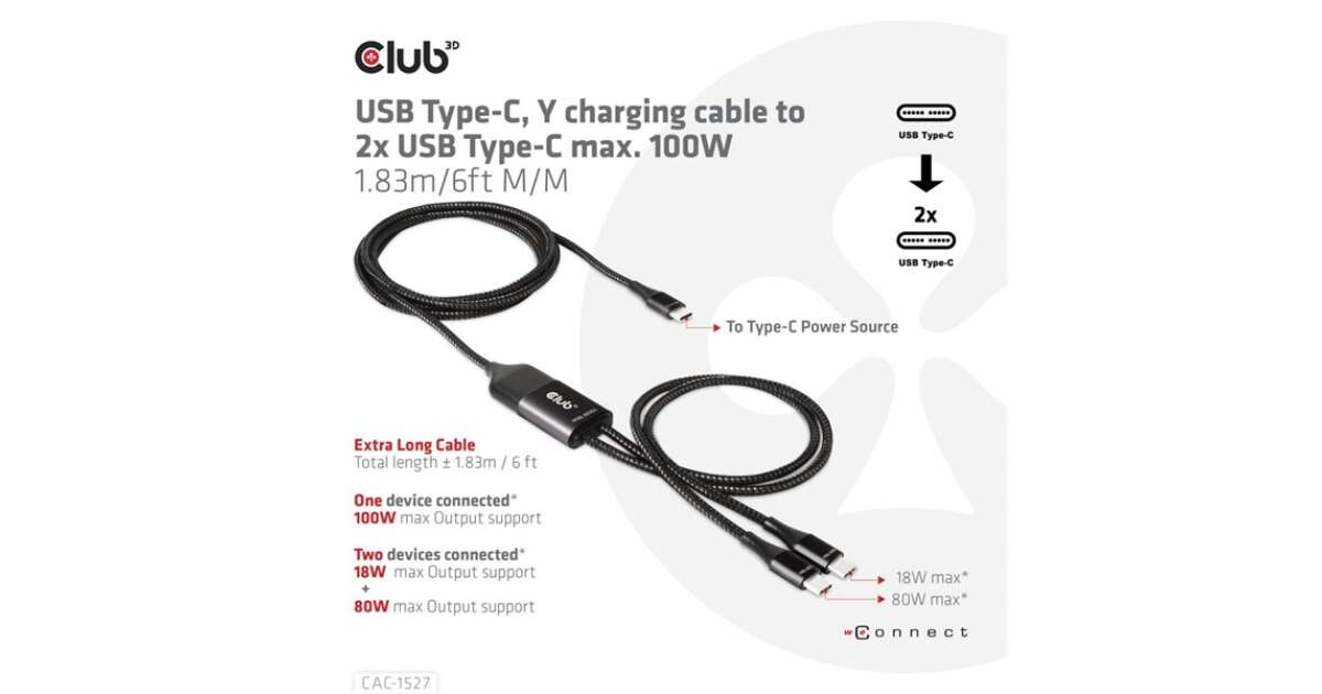 CLUB3D USB-C Y Töltékábel - 2x USB-C - 1,83m leírása