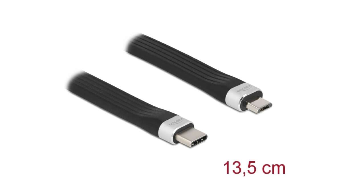 Delock 86793 13,5cm USB 2.0 USB-C - MicroUSB PD3 FPC lapos kábel