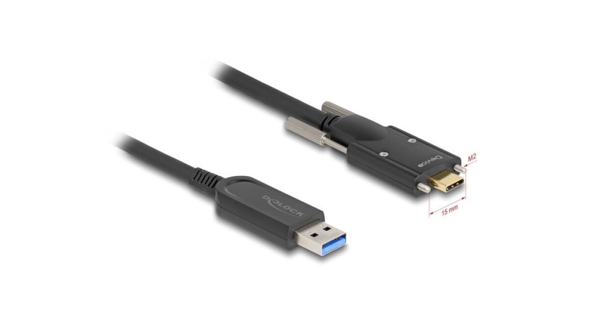 Delock Aktív optikai kábel USB 10 Gbps-A apa - USB Type-C apa csatlakozó csavarokkal az oldalain, 15 m leírása