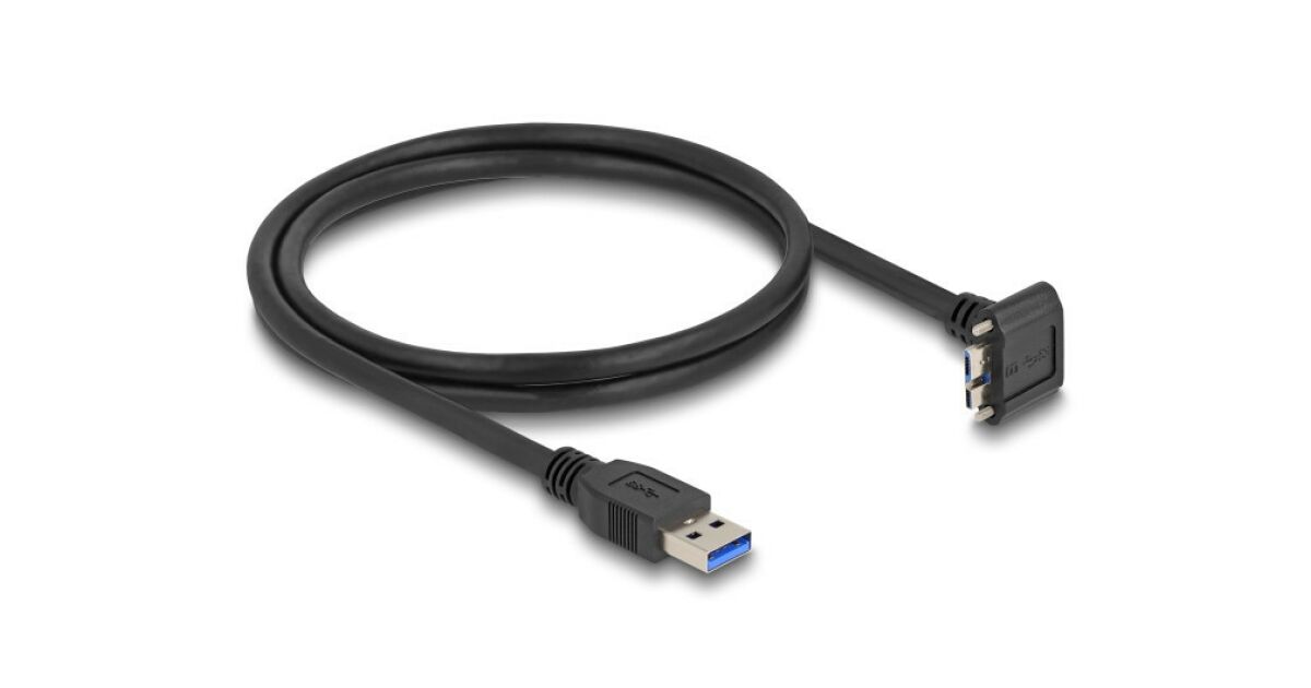 Delock USB 5 Gbps kábel A-típusú USB apa egyenes Micro-B USB apa csavarral 90 -ban felfelé hajlított 1 m fekete