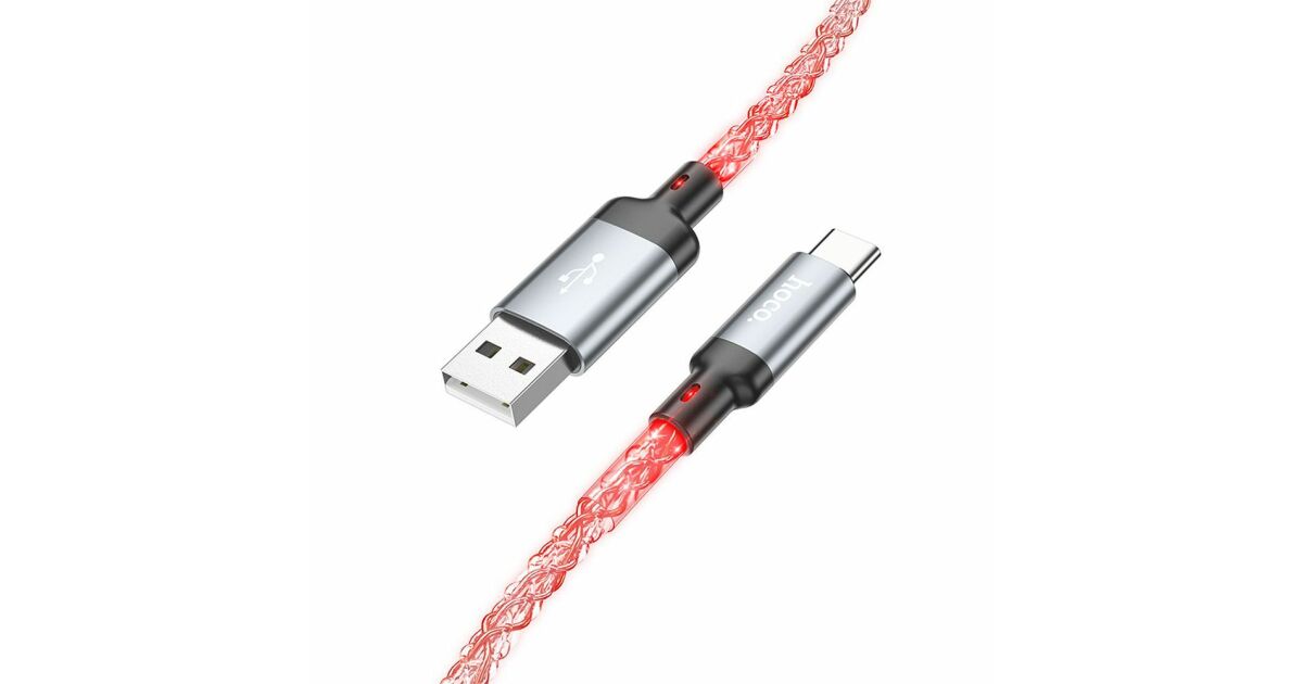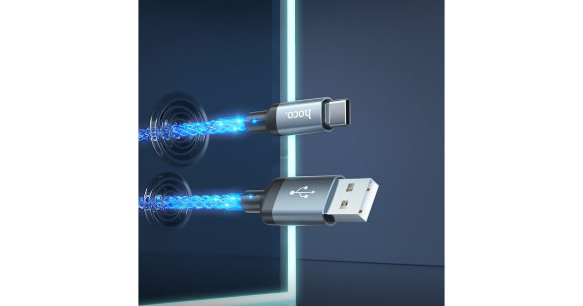 HOCO U112 SHINE világítós USB-C kábel: 1 méteres, 3A-es töltés, stílusos kiegészítő ✨