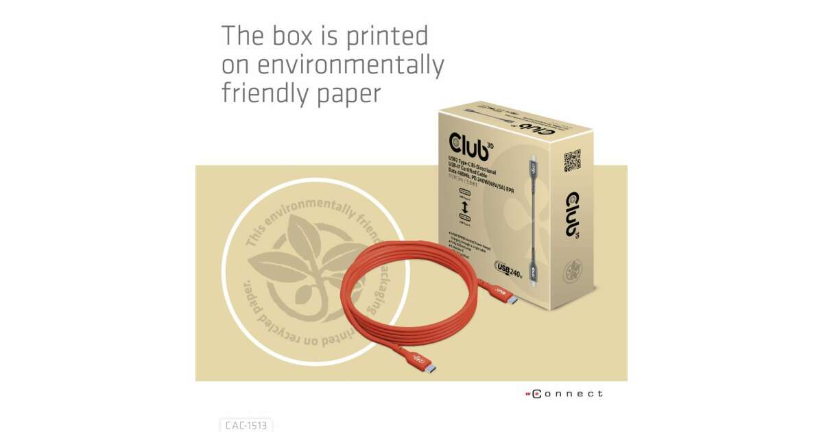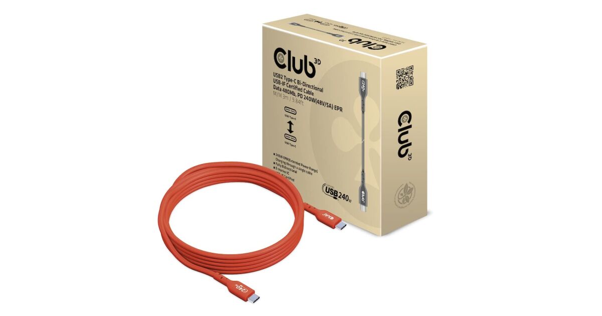 Club3D USB2 Type-C Bi-Directional USB-IF Certified Cable Data 480Mb, PD 240W(48V/5A) EPR M/M 3m / 9.84 ft leírása