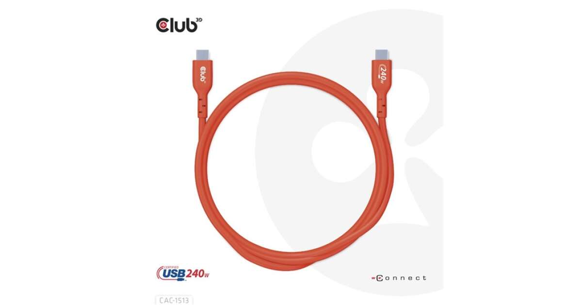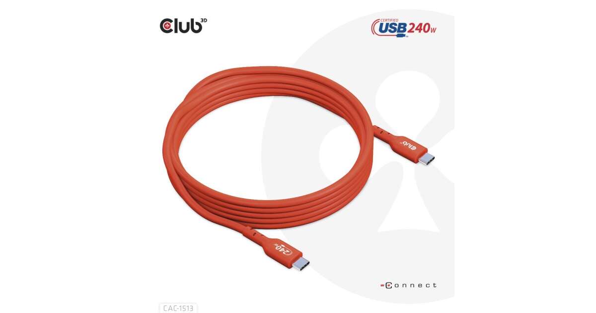 Club3D USB-C Kábel: 240W-os Töltést és 480Mb/s Adatátvitelt Biztosít ⚡
