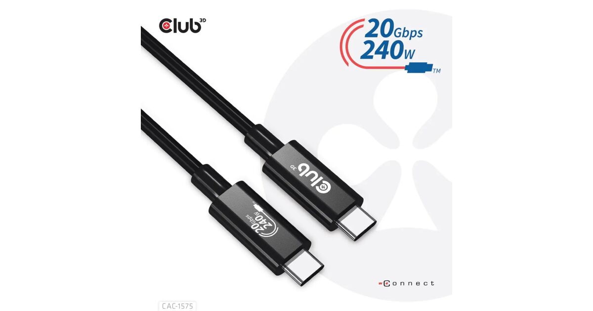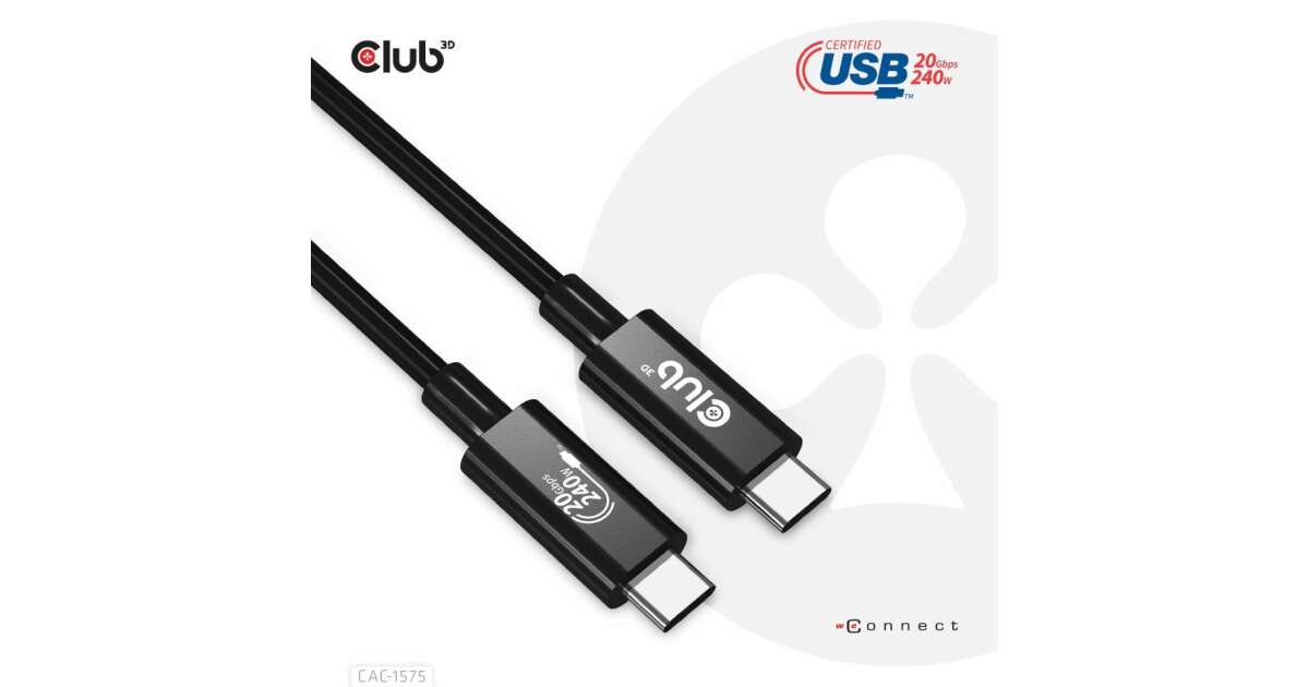 Ezt a terméket így is ismerheted: Club3D USB4 Gen2x2 Type-C Bi-Directional USB-IF Certified Cable 4K60Hz, Data 20Gbps, PD 240W(48V/5A) EPR M/M