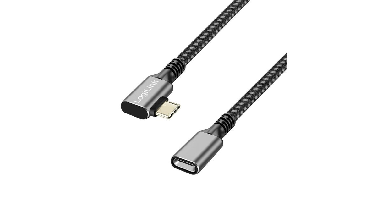 Logilink USB 3.2 Gen2 Type-C kábel, C/M 90 - USB-C/F, PD, alu, fekete/szürke, 1 m (CUA0111) leírása