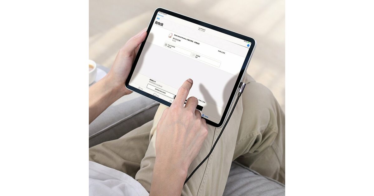 - Kényelmes használat: A 90 fokos szögű csatlakozó megkönnyíti a használatot szűk helyeken, például autós tartóban vagy falitöltővel.