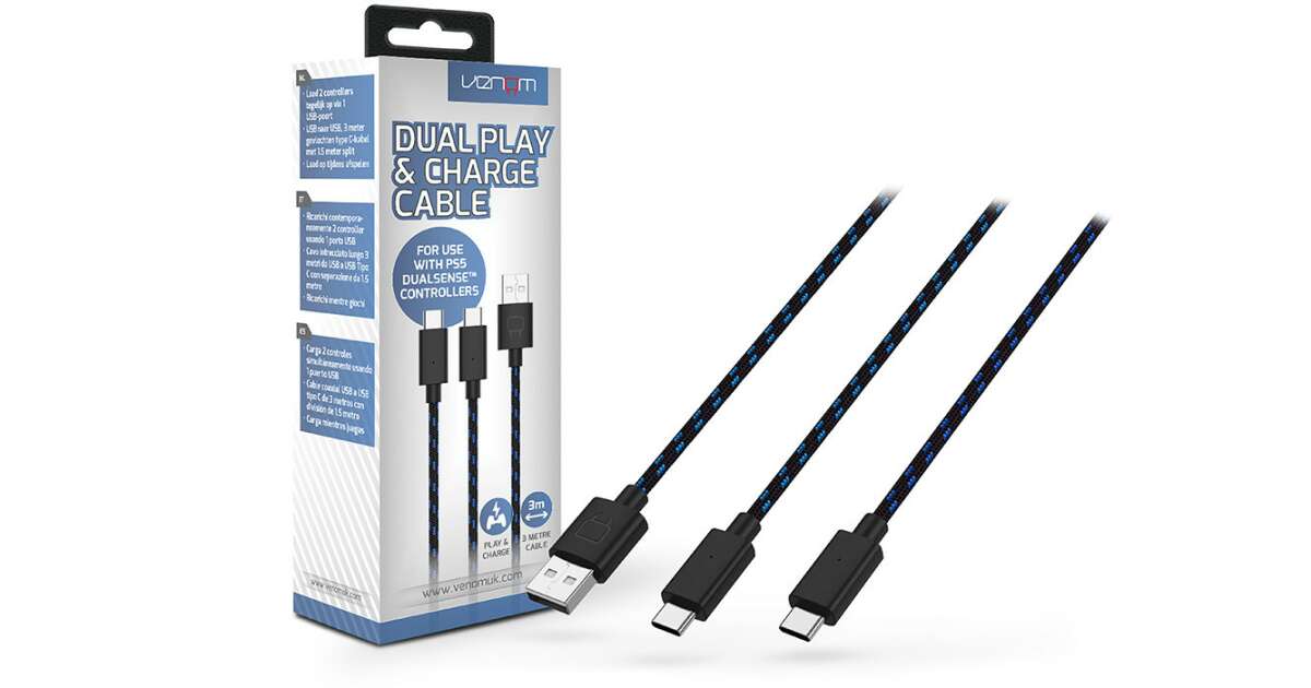 Ez a Venom VS5002 Dual Play & Charge kábel lehetővé teszi, hogy PS5 DualSense kontrolleredet játék közben is töltsd. A 3 méteres hosszúságnak köszönhetően kényelmesen játszhatsz, anélkül, hogy a kábel korlátozná a mozgásodat.