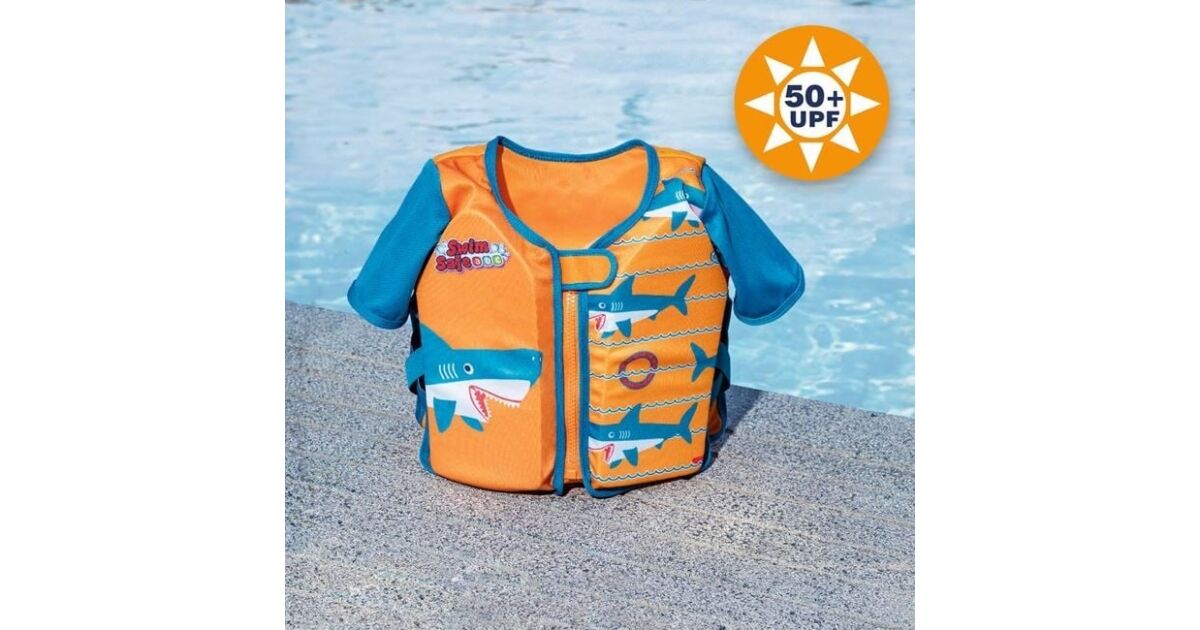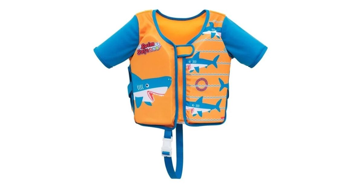 Gyermek úszómellény ujjakkal 1-3 éveseknek, Bestway, Shark modell, hab, napvédelem, narancssárga-kék vélemények
