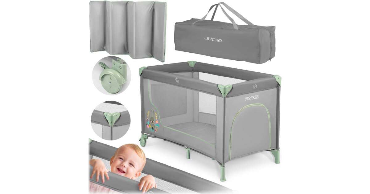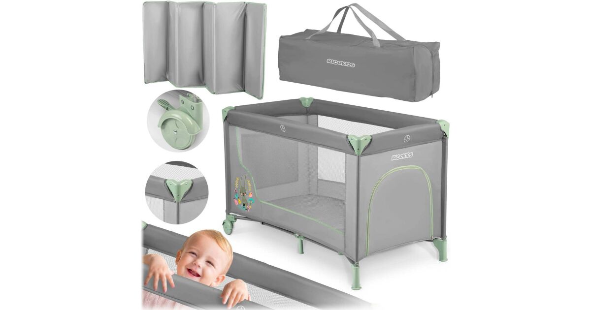 RicoKids Utazóágy Matraccal - Szürke-Menta: Kényelmes alvás bárhol is vagytok 😴