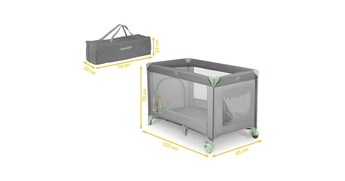RicoKids Utazóágy matraccal, 125x65x78cm, 15kg - Szürke, Menta leírása