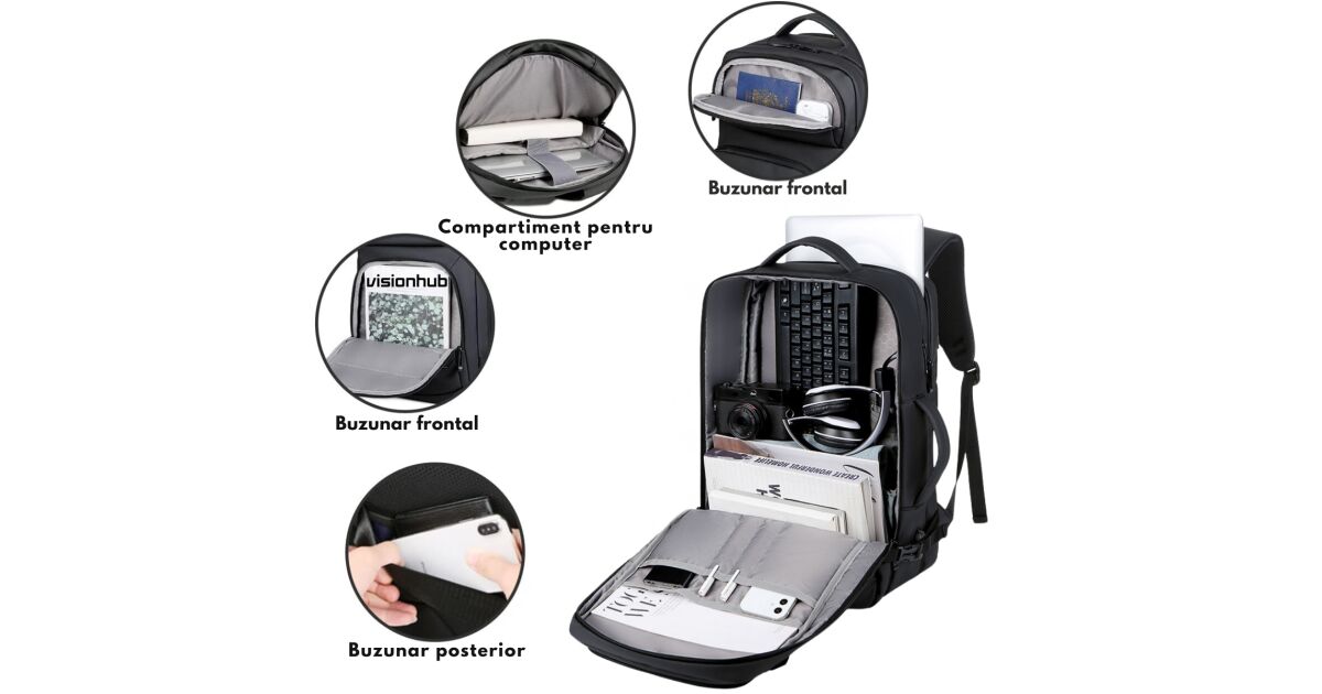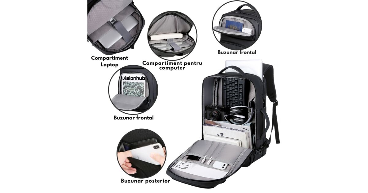 Ezt a terméket így is ismerheted: Utazó hátizsák 17 hüvelykes laptophellyel, Bővíthető, Vízálló, Ideális repülésekhez – Kompatibilis a repülőgép kabinjával, VisionHub® többfunkciós táska, USB töltőporttal, több zsebbel, nagy