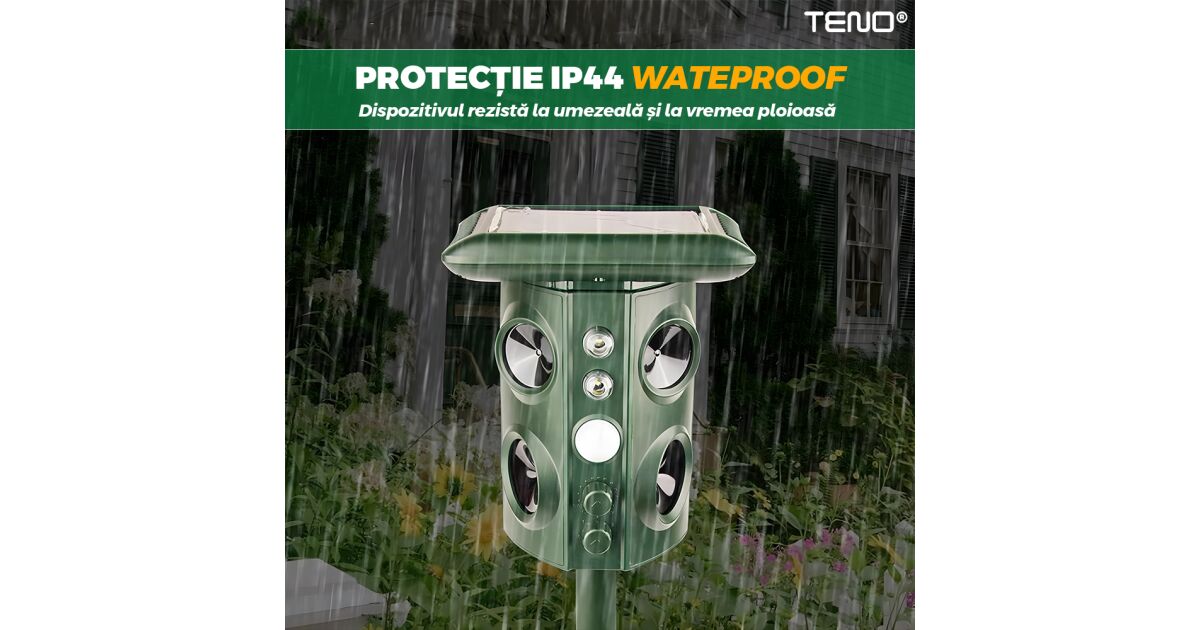 A Teno® ultrahangos vadriasztó ideális megoldás, hogy távol tartsd a nem kívánt látogatókat kertedtől, udvarodtól vagy gyümölcsösödtől. Napelemes és USB töltési lehetőséggel, 360°-os hatótávolsággal, valamint vízálló kialakítással rendelkezik, így egész évben hatékony védelmet nyújt.