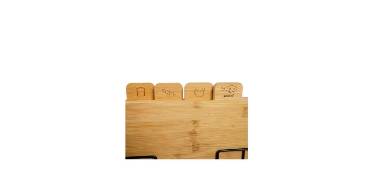 Ezt a terméket így is ismerheted: Bambusz Vágódeszka Szett - 4 db + Állvány - Piktogrammal
