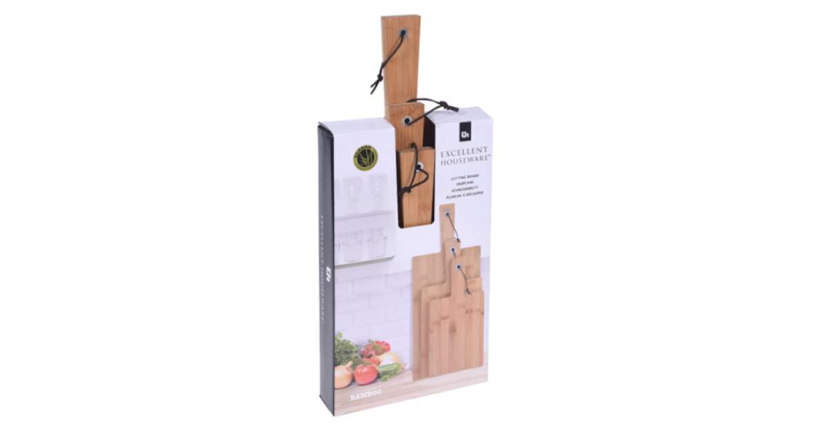 Ez a nagyméretű, 3 részes bambusz vágódeszka szett tökéletes választás a konyhába. A strapabíró bambusz anyag hosszú élettartamot garantál, miközben a különböző méretek minden vágási igényt kielégítenek.
