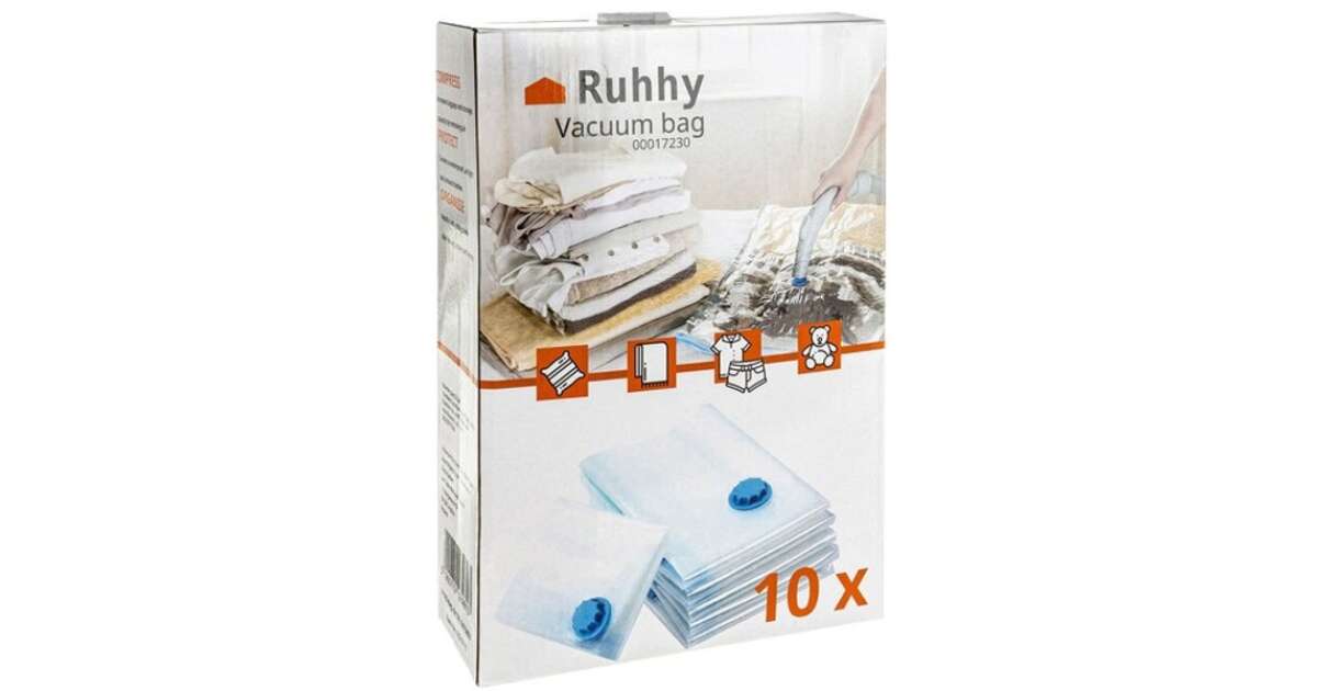Ez a 10 darabos vákuumzsák készlet ideális megoldás a ruhaneműk, takarók és egyéb textíliák helytakarékos tárolására. A porszívóval történő levegő kiszívása után a zsákok akár 80%-kal is csökkentik a térfogatot, így jelentősen megtakaríthatja a helyet a szekrényben, a padláson vagy a garázsban. A vásárlók véleménye alapján a termék kiváló minőségű és praktikus.