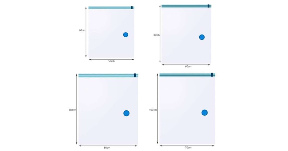 - 10 db vákuumzsák 4 különböző méretben (50x60cm - 5 db, 60x80cm - 3 db, 70x100cm - 1 db, 80x100cm - 1 db)