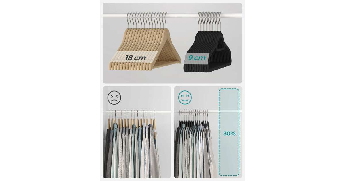 Ezt a terméket így is ismerheted: SONGMICS Bársony Ruhafogas - 20 db - Fekete