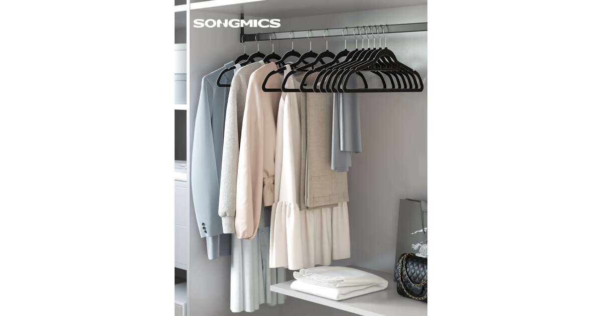 Praktikus és elegáns megoldás ruháid rendezett tárolására! Ez a 20 darabos SONGMICS bársony ruhafogas készlet tökéletes választás a gardróbodba. A bársony bevonat megakadályozza a ruhák csúszását, így a selyemingek és más kényes anyagok is biztonságban vannak. 👚