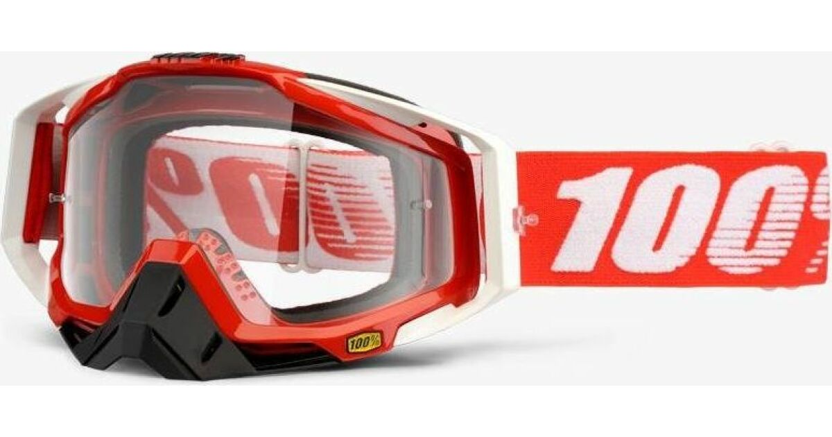 100% Szemüveg 100% RACECRAFT FIRE RED (Átlátszó Anti-Fog lencse + 10 cserélhető lencse) (NEW)