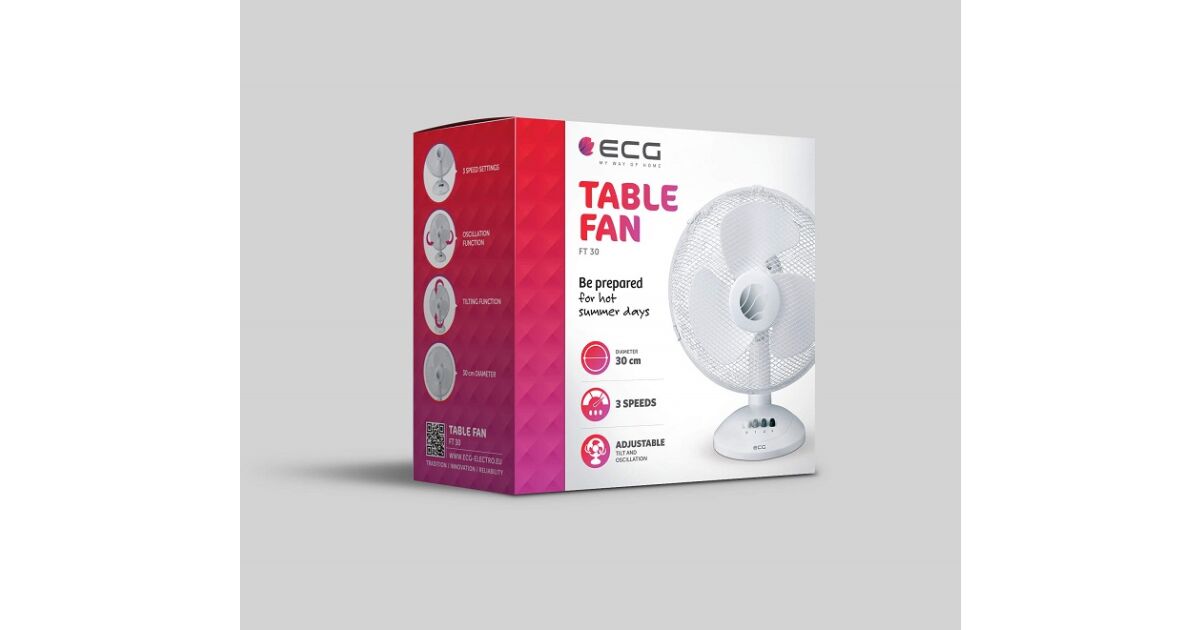 Asztali ventilátor, ECG FT 30a, 40W, 30cm, 3 sebesség, nagyon csendes