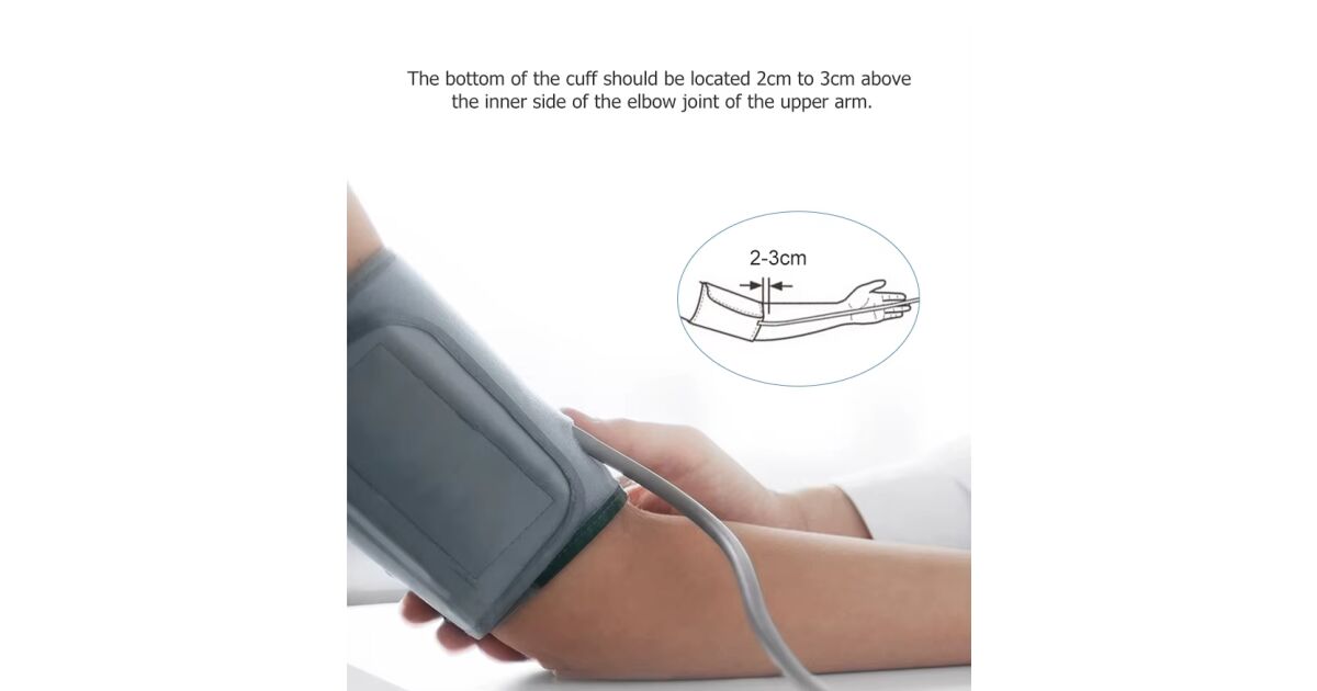 - Mandzsetta helyes felhelyezése: A bal karra helyezze, 2-3 cm-rel a könyök fölé.
