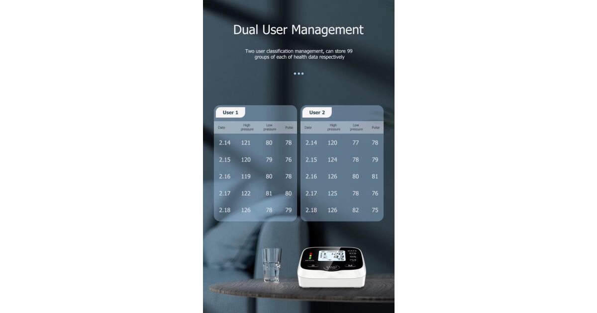 - 👨👩👧👦 Kétfelhasználós mód: 2 felhasználó adatainak tárolása, egyenként 99 méréssel.