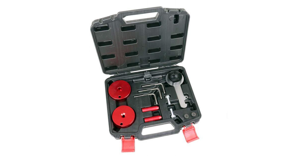Ez a professzionális időzítő zárkészlet kifejezetten a legújabb Ford 2.0D EcoBlue TDCi motorokhoz lett tervezve, beleértve a Transit Custom és Tourneo Custom modelleket is. A készlet minden szükséges eszközt tartalmaz a pontos és biztonságos vezérműszíj beállításhoz. A megoldás kulcsa, hogy a hajtószíj a motor olajos részén helyezkedik el, így ez a készlet elengedhetetlen a precíz munkavégzéshez.