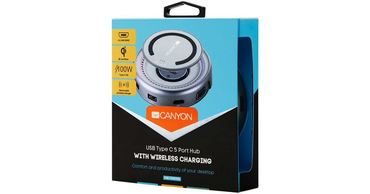 A Canyon 6 az 1-ben USB-C Hub vezeték nélküli töltővel a tökéletes választás mindazok számára, akik egyetlen eszközben keresik a kényelmet, a funkcionalitást és a stílust.
