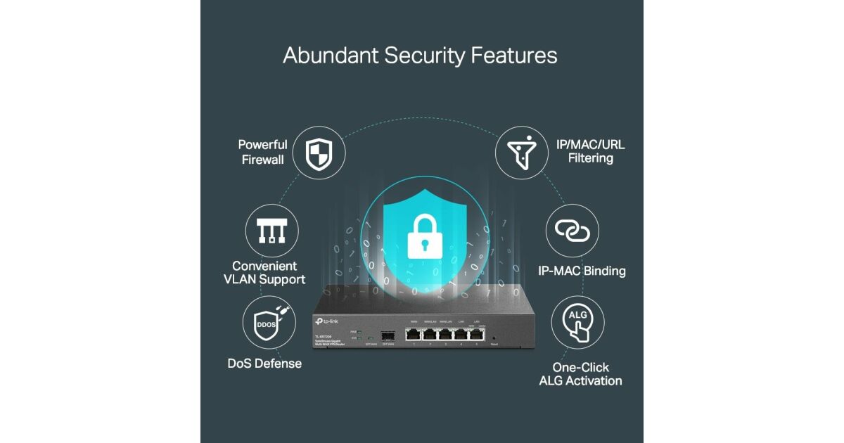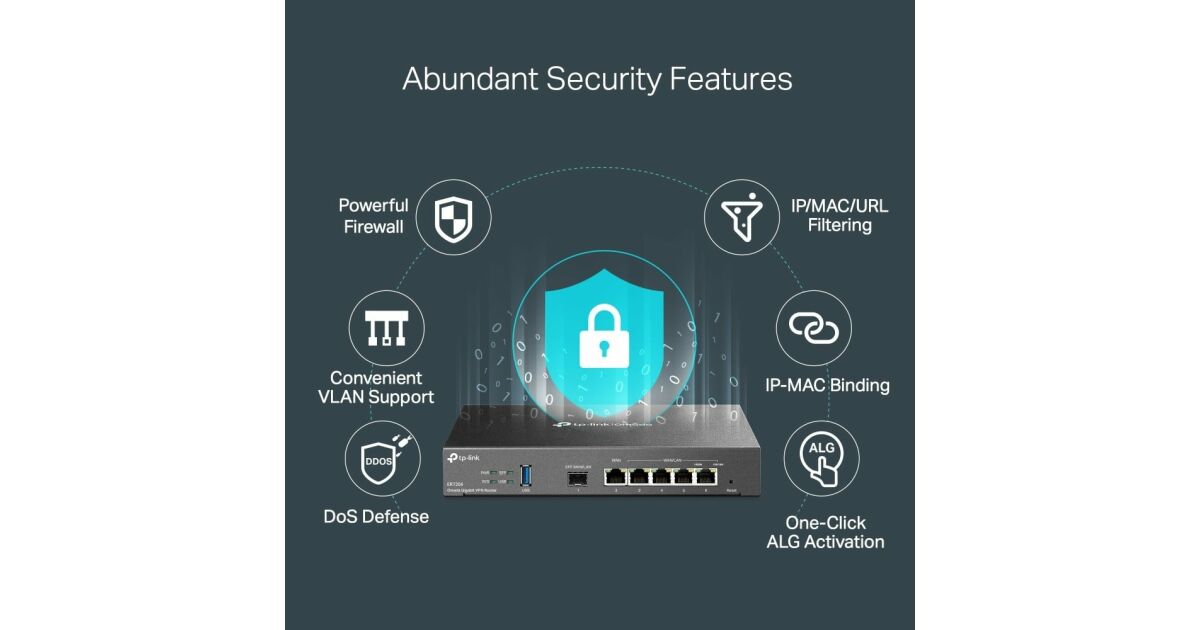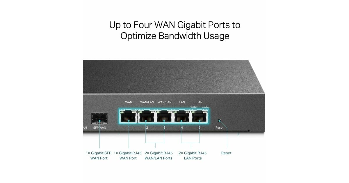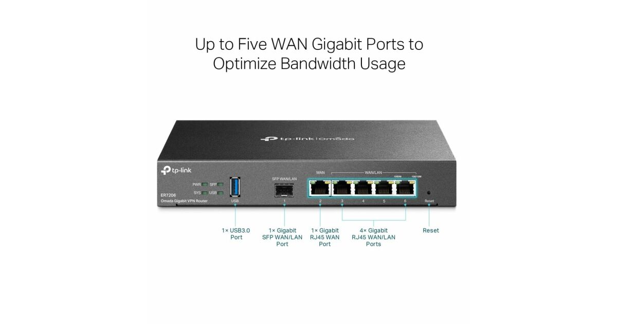 TP-Link Router - ER7206 VPN (1Gbps, 6 port, 1 RJ45 + 1 SFP WAN / 2 RJ45 LAN / 2 RJ45 LAN-WAN port; 50x VPN) leírása