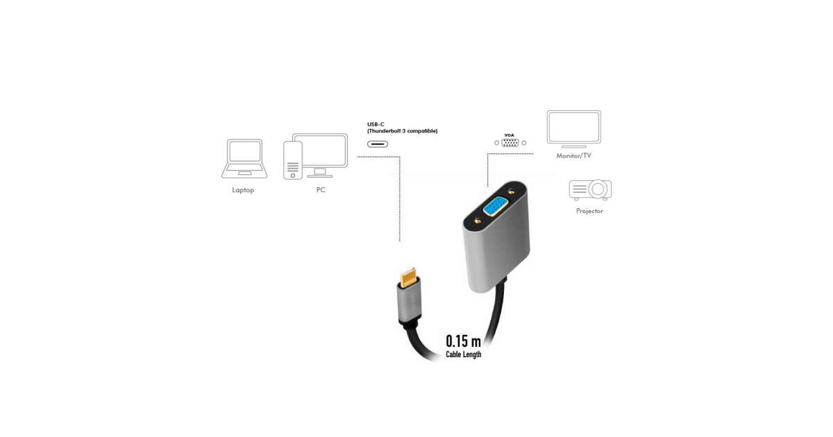 - USB-C (M) - VGA (F) csatlakozó: Könnyű csatlakoztatás a legtöbb eszközhöz.
