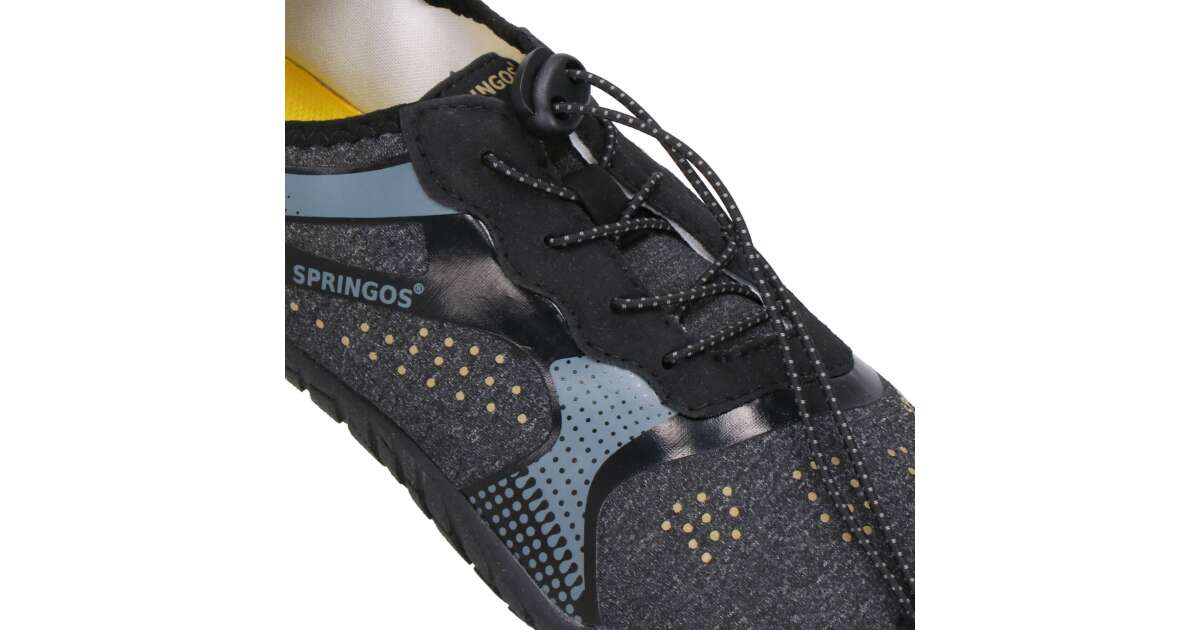 Ez a Springos® férfi vízicipő ideális választás a strandra, a vízhez, vagy bármilyen vízi sporthoz. Kényelmes, légáteresztő, és strapabíró kialakításának köszönhetően egész napos viseletre is alkalmas.