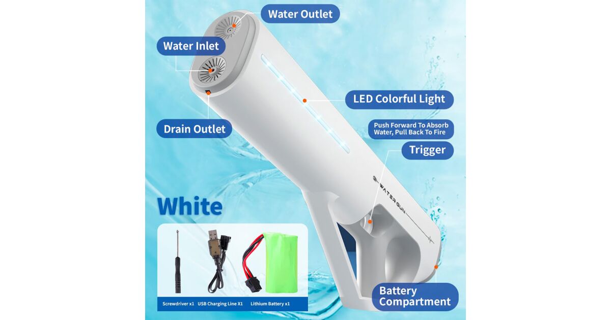 Készülj fel a felejthetetlen nyári kalandokra a Dollcini automata elektromos vízipisztollyal! Ez a futurisztikus dizájnnal és lenyűgöző funkciókkal rendelkező vízipisztoly garantálja a szórakozást minden korosztály számára.