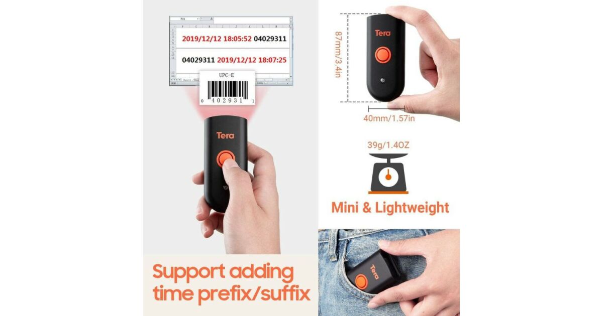 Ezt a terméket így is ismerheted: Tera Mini 1D 2D QR Vezeték Nélküli Vonalkódolvasó – Bluetooth, USB, 2.4G, Vízálló és Ütésálló Zseb Szkenner