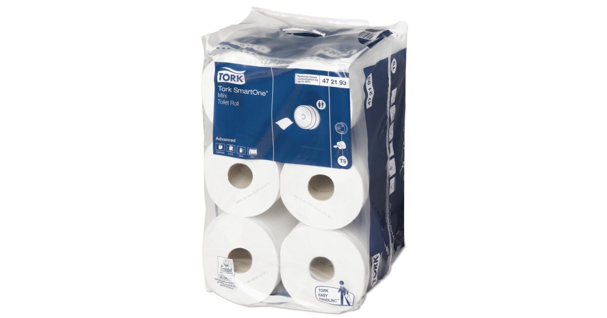 A Tork SmartOne Mini toalettpapír-rendszere laponkénti adagolást tesz lehetővé, így a fogyasztás akár 40%-kal csökkenthető a hagyományos termékekhez képest, vagyis egy tekercsre több felhasználó jut. A Tork SmartOne Mini nagy teljesítményű tekercs a kis, közepes vagy nagy forgalmú mosdókba egyaránt kiváló választás, a hozzá illő Tork SmartOne Mini adagolóval együtt.