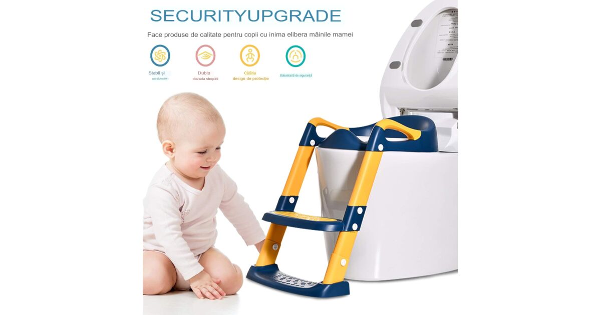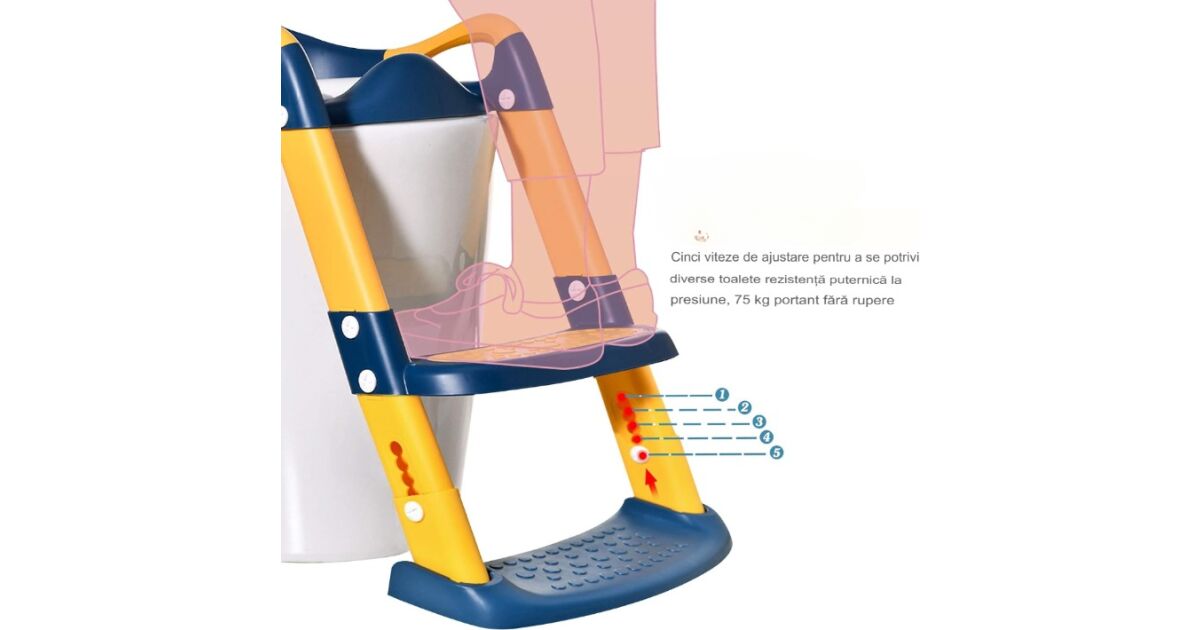 Ezt a terméket így is ismerheted: Arvada® WC-ülőke létrával, csúszásmentes, gyerekeknek 10 éves korig, fröccsenés elleni védelem, összecsukható, 2 lépcsős, állítható magasságú, 38 x 40 x 47 cm, támasztó fogantyúk, Kék / Sárga