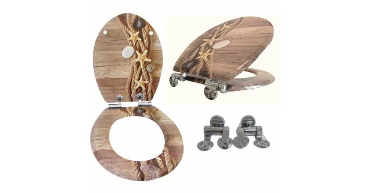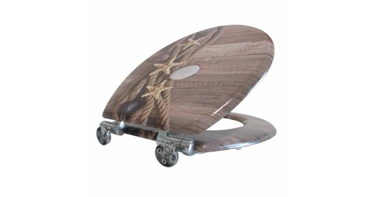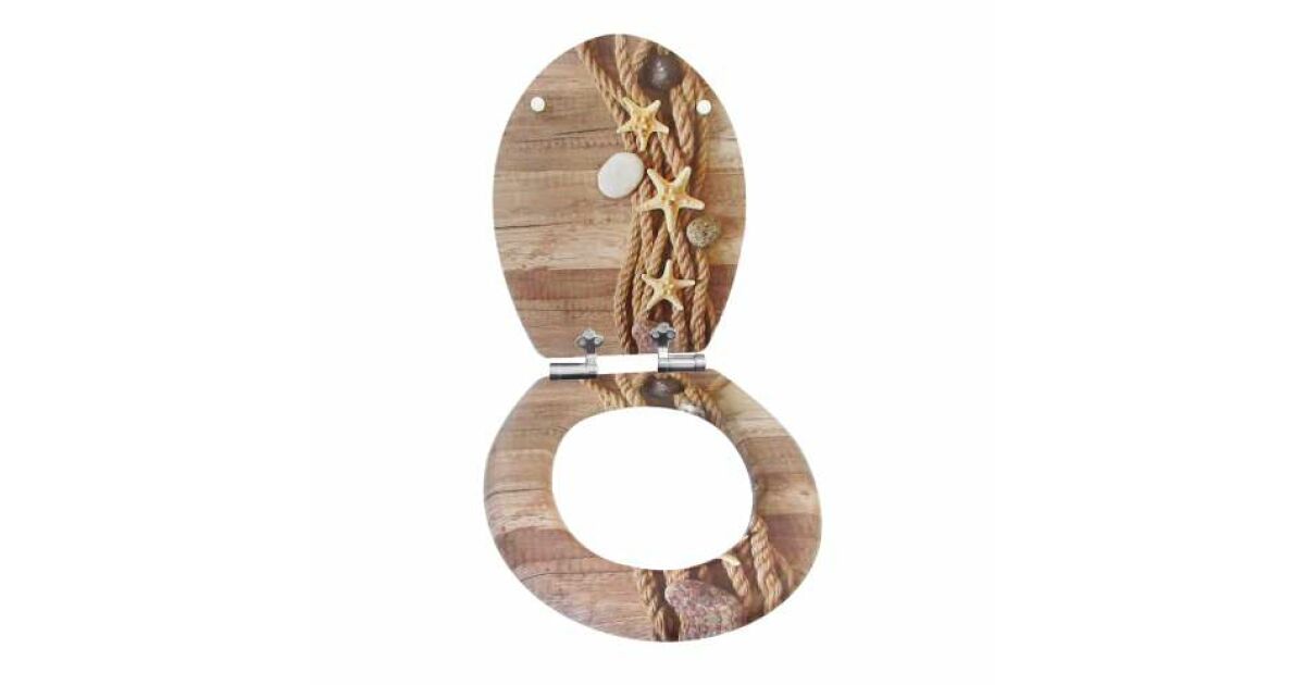 Ez a tengericsillag mintás WC-ülőke masszív MDF anyagból készült, és lassan záródó mechanikával rendelkezik, így nem csak praktikus, de csendes is. Bár a csomagolása sérült, maga a termék teljesen ép és új.