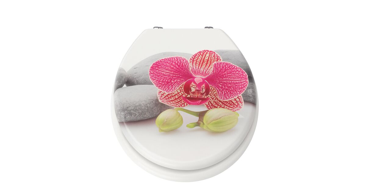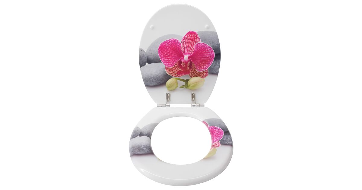 Dobd fel fürdőszobád hangulatát ezzel a gyönyörű, orchidea mintás WC ülőkével! A masszív MDF anyagból készült ülőke nem csak tartós, de a lassan záródó mechanizmusnak köszönhetően csendes és kényelmes használatot biztosít.