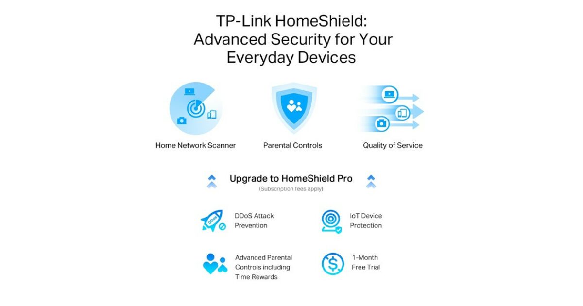 - HomeShield: A TP-Link HomeShield fejlett biztonsági funkciókkal védi hálózatát a külső támadásoktól és a rosszindulatú tartalmaktól. Tartalmaz szülői felügyeletet és IoT eszközvédelmet is.