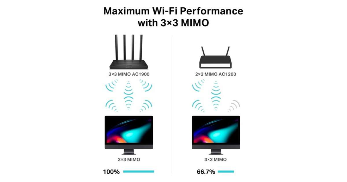 - AC1900 Dual Band: 1300 Mbps (5 GHz) + 600 Mbps (2.4 GHz) sebesség