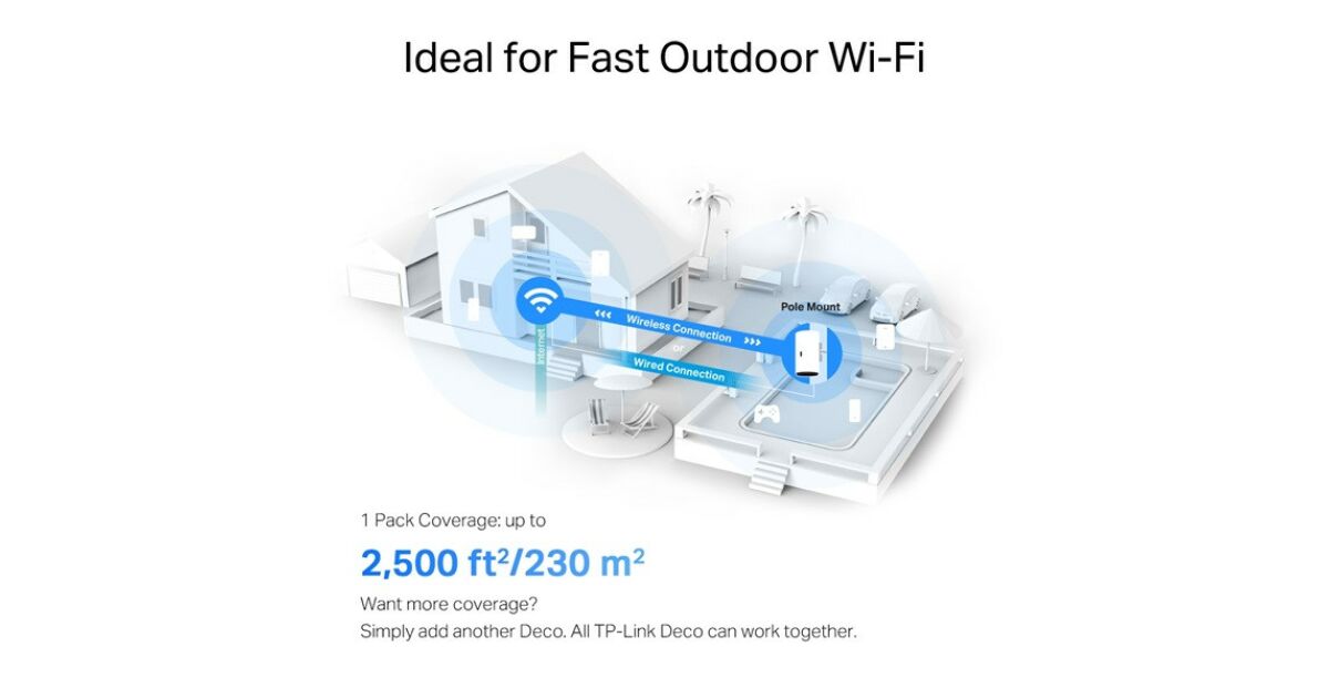 A TP-Link Deco X50-Outdoor tökéletes választás, ha megbízható és nagy teljesítményű Wi-Fi hálózatra van szükséged a kültéri területeken is. Legyen szó munkáról, szórakozásról vagy okosotthon eszközök vezérléséről, a Deco X50-Outdoor gondoskodik a stabil és gyors kapcsolatról. 👍
