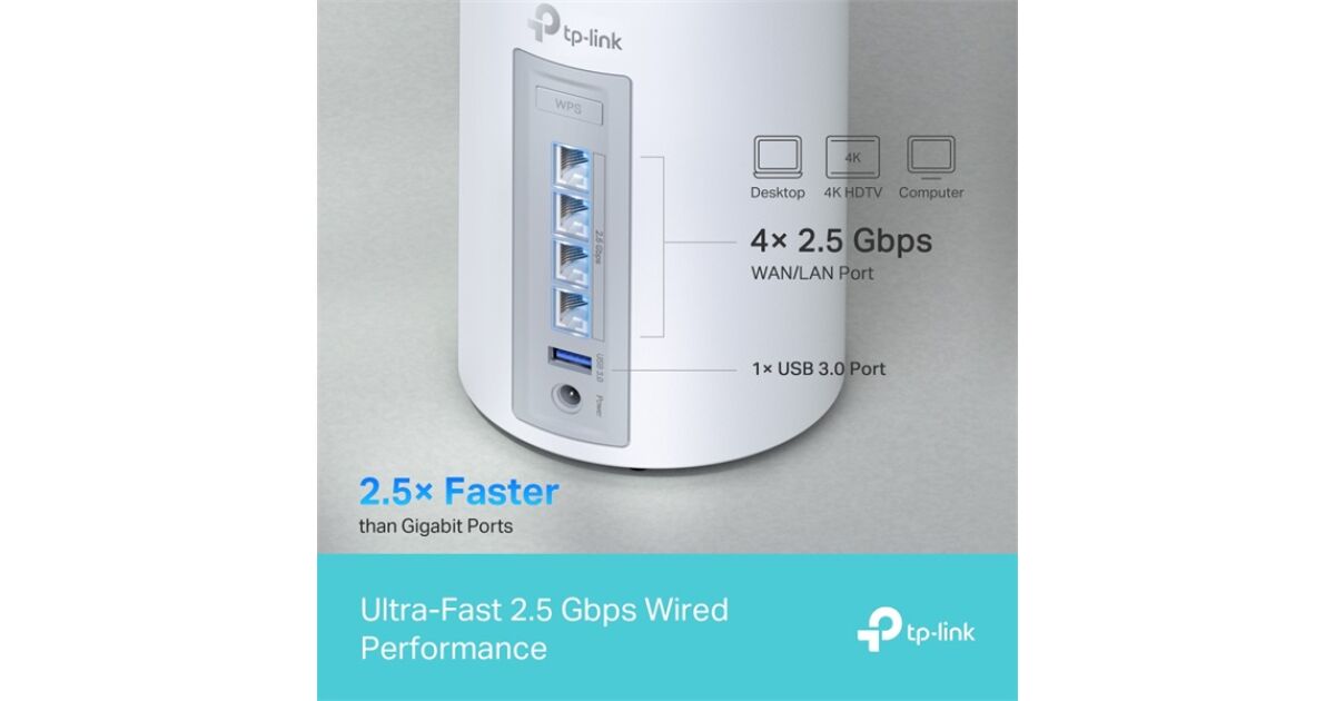 - 2.5 Gbps portok: 4 darab 2.5 Gbps WAN/LAN port a villámgyors vezetékes kapcsolatokhoz.