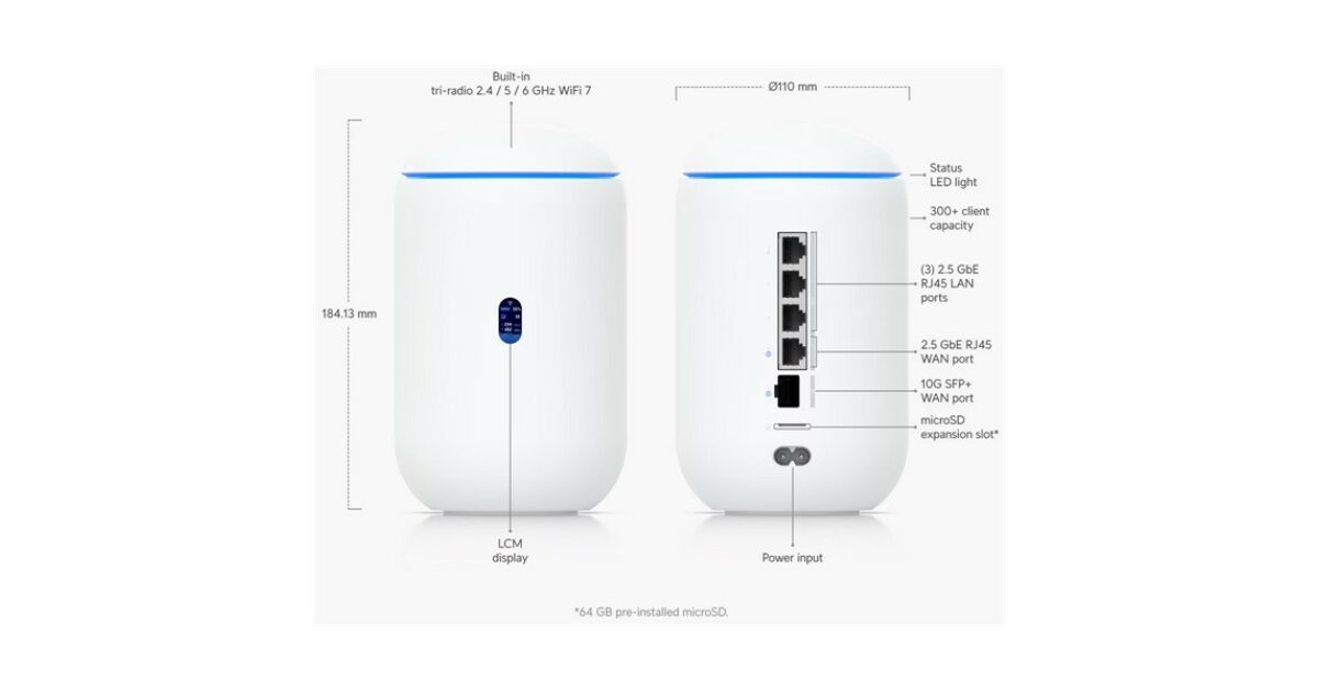 Ubiquiti UDR7 UniFi Dream Router 7 WiFi 7 Tri-band (Access Point, Switch, Tűzfal, Controller) hálózati eszköz leírása