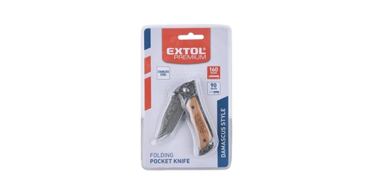 Extol Premium ZSEBKÉS (BICSKA), ROZSDAMENTES ACÉL PENGE DAMASZK MINTÁVAL, FA BETÉTES NYÉL 8855121