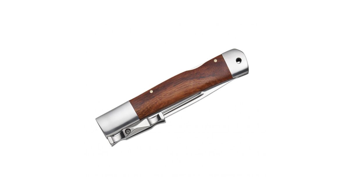 Foxter taktikai és katonai összecsukható zsebkés, 23 cm, acél és fa, hatékony Back Lock rendszer leírása
