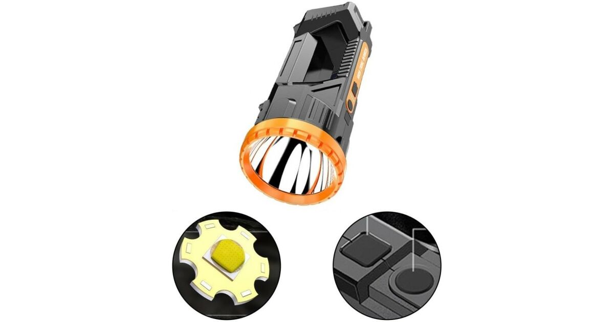 LED zseblámpa, KeepHome, USB töltés, 8-24 órás autonómia, 2 fényforrás, fő és oldalsó, maximális hatótávolság 100-200 m, COB, 5 W, 23 x 10 x 10 cm, sárga vélemények