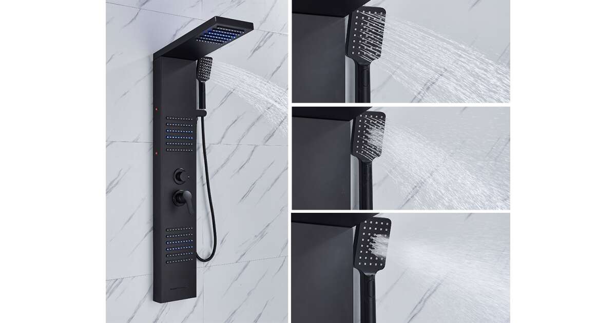 Élvezze a luxus fürdési élményt ezzel a 122 cm magas, elegáns fekete Blackswan zuhanypanellel! A vízesés zuhanyfej, a kényeztető SPA fúvókák és a hangulatos LED világítás tökéletes kombinációja garantálja a pihenést és a felfrissülést.