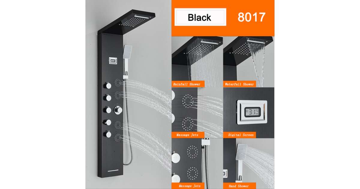Ezt a terméket így is ismerheted: Zuhanylap, Blackswan, M8017 típusú fekete modell digitális kijelzővel, vízesés csapteleppel és SPA funkciókkal, méret 114 cm